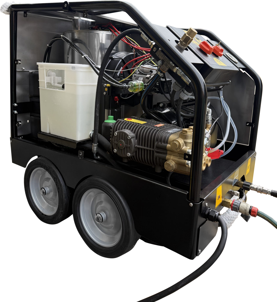 - High-pressure detergent suction with proportional detergent regulation