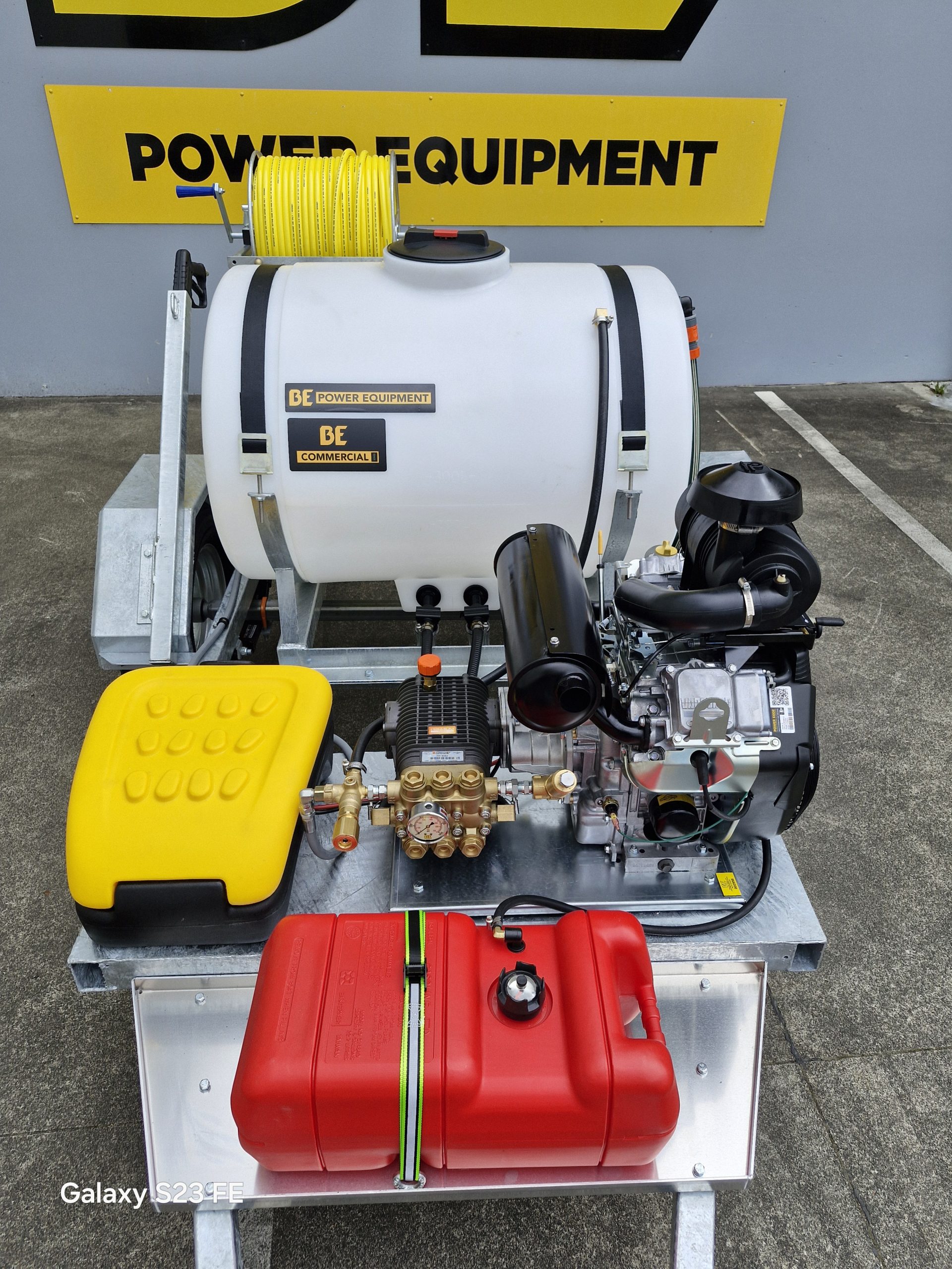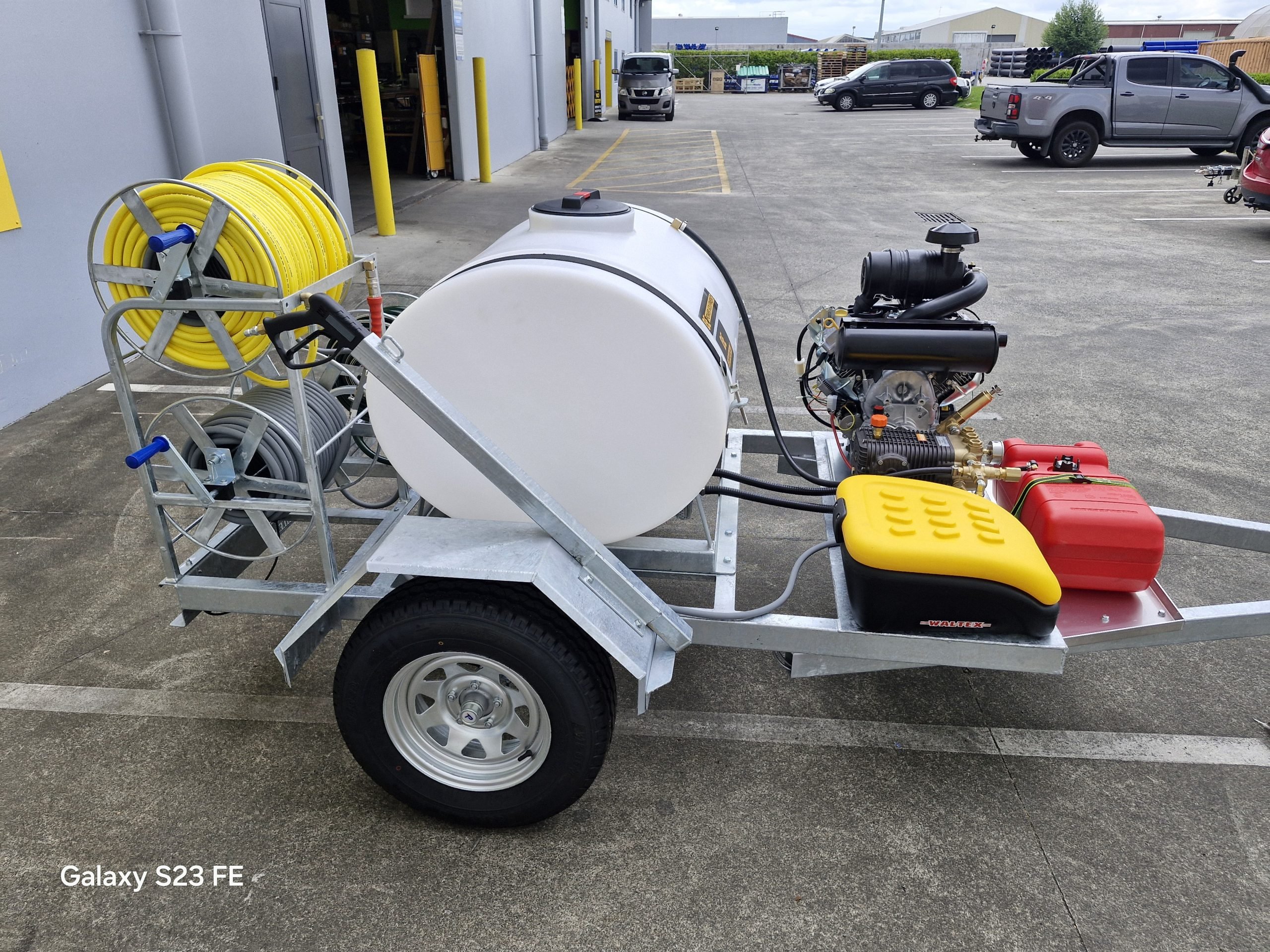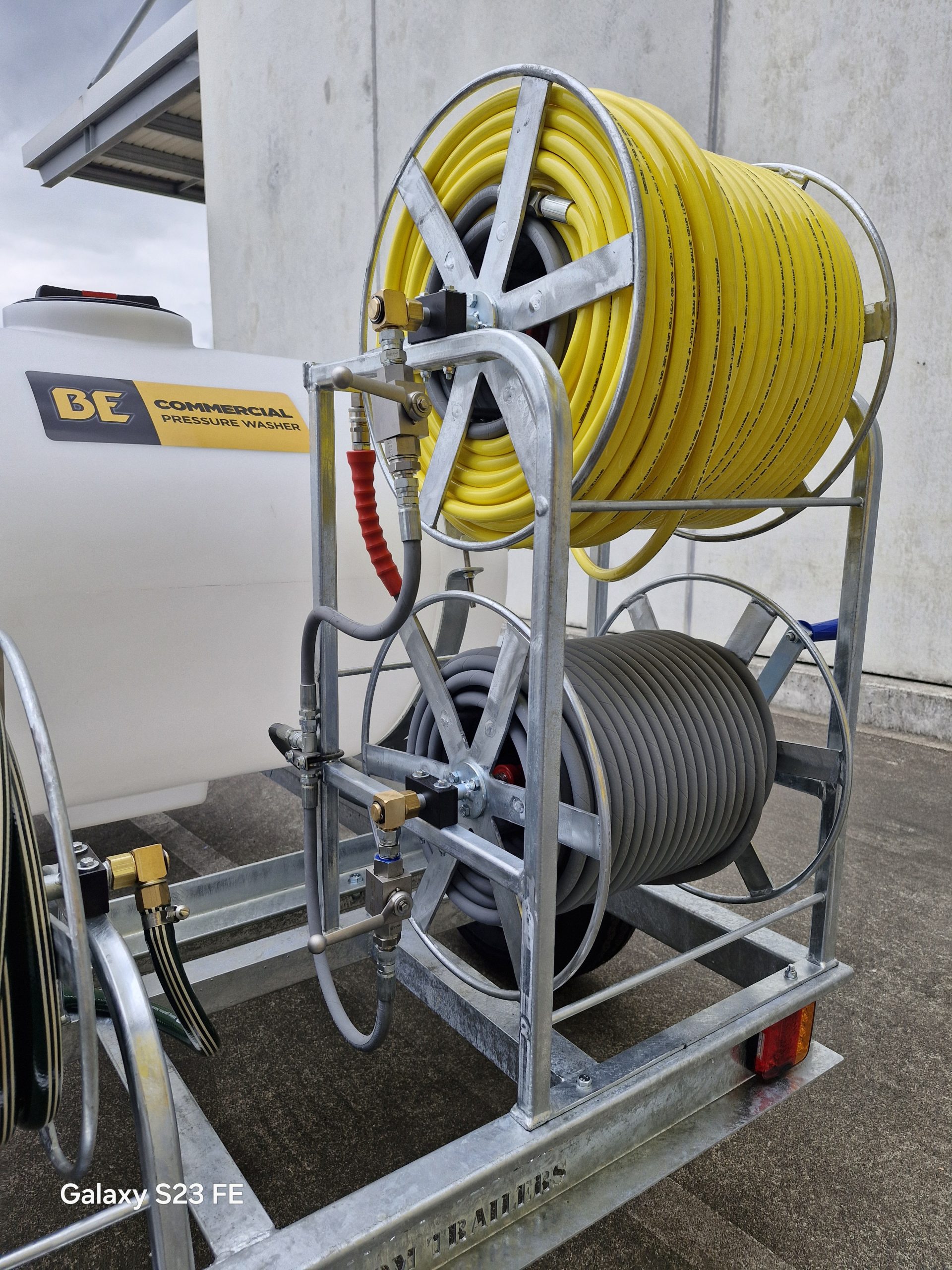 - Reel 1: 100 m 3/8″ jetting hose on galvanised reel