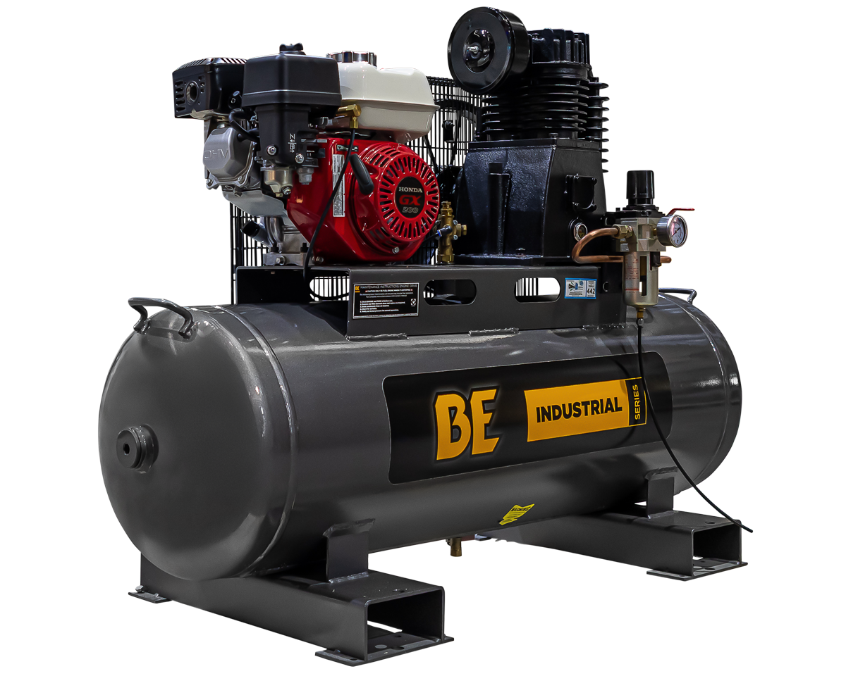 Big jobs require big units. BE’s line of industrial, large tank belt drive air compressors give you the power, and capacity needed for these jobs. With a wide range of electric, petrol, and diesel units, you’re sure to find the ideal compressor for your workshop!