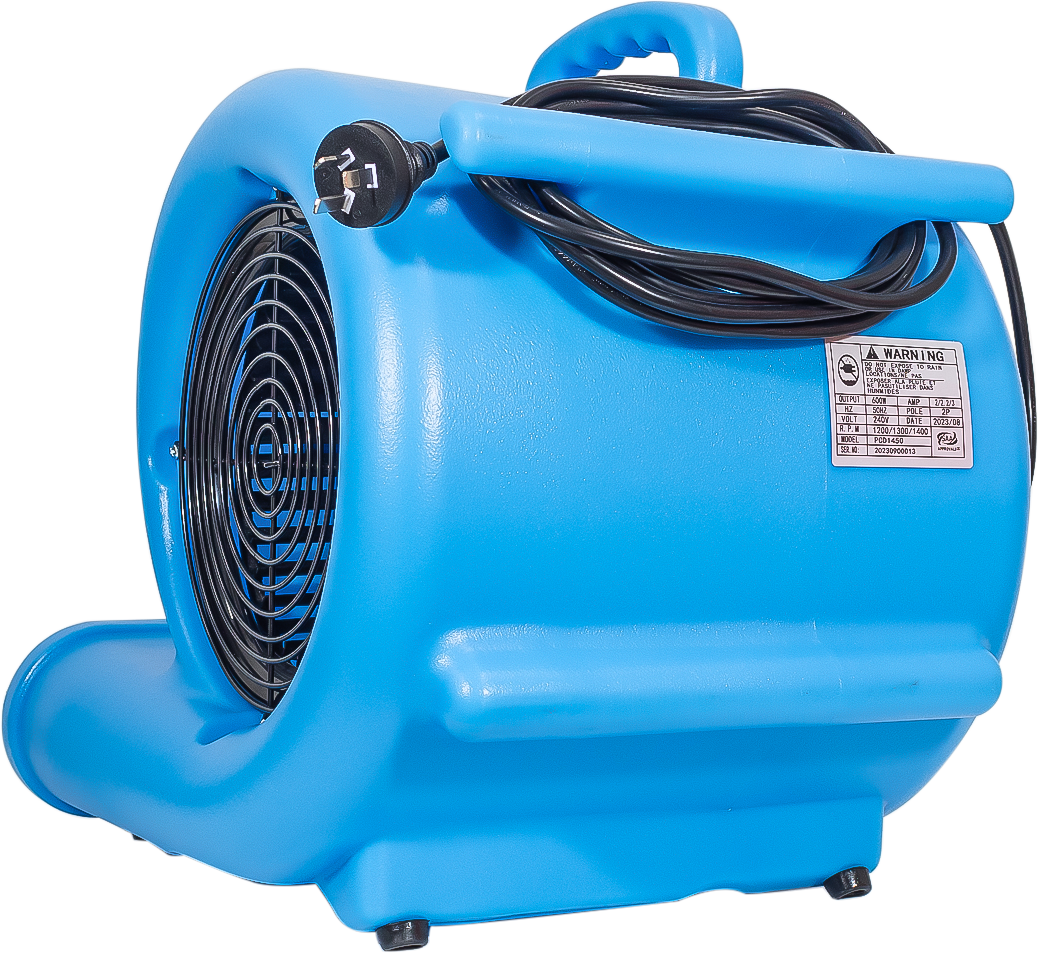 The BE PCD 1450 Poly Carpet Dryer is engineered to provide fast, even airflow for effective drying of carpets, floors, and other surfaces. Built with lightweight and impact-resistant materials, it’s ideal for commercial cleaning and restoration projects. High-velocity airflow accelerates drying times and improves efficiency. Lightweight polyethylene housing offers durability and resistance to impacts. Ergonomic design with built-in handle for easy portability. Multiple speed settings for customizable drying performance