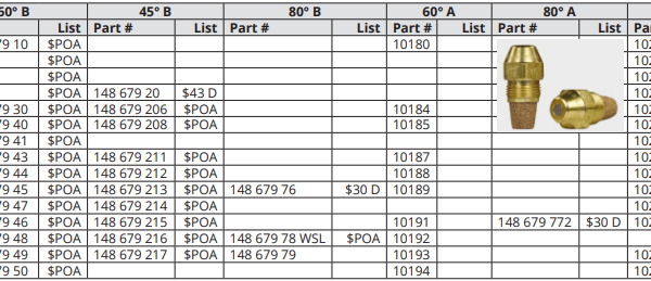 Diesel Nozzle 80° B – Delavan Gal/Hr Variable