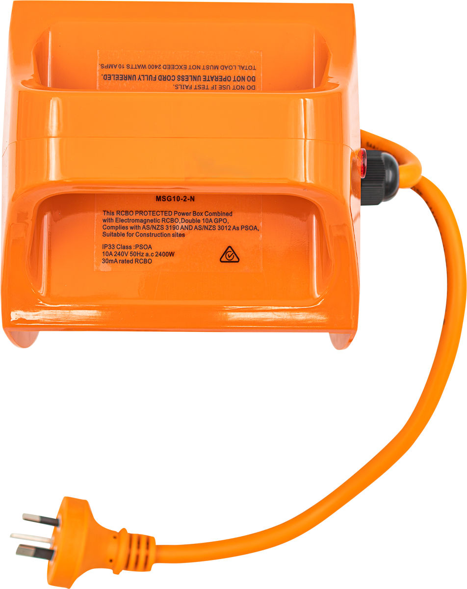- Certified to all PSOA requirments ie: Double Pole, certified Electromagnetic RCBO, upgraded power cable, correctly stickered on box and RCBO to satisfy worksite inspectors.