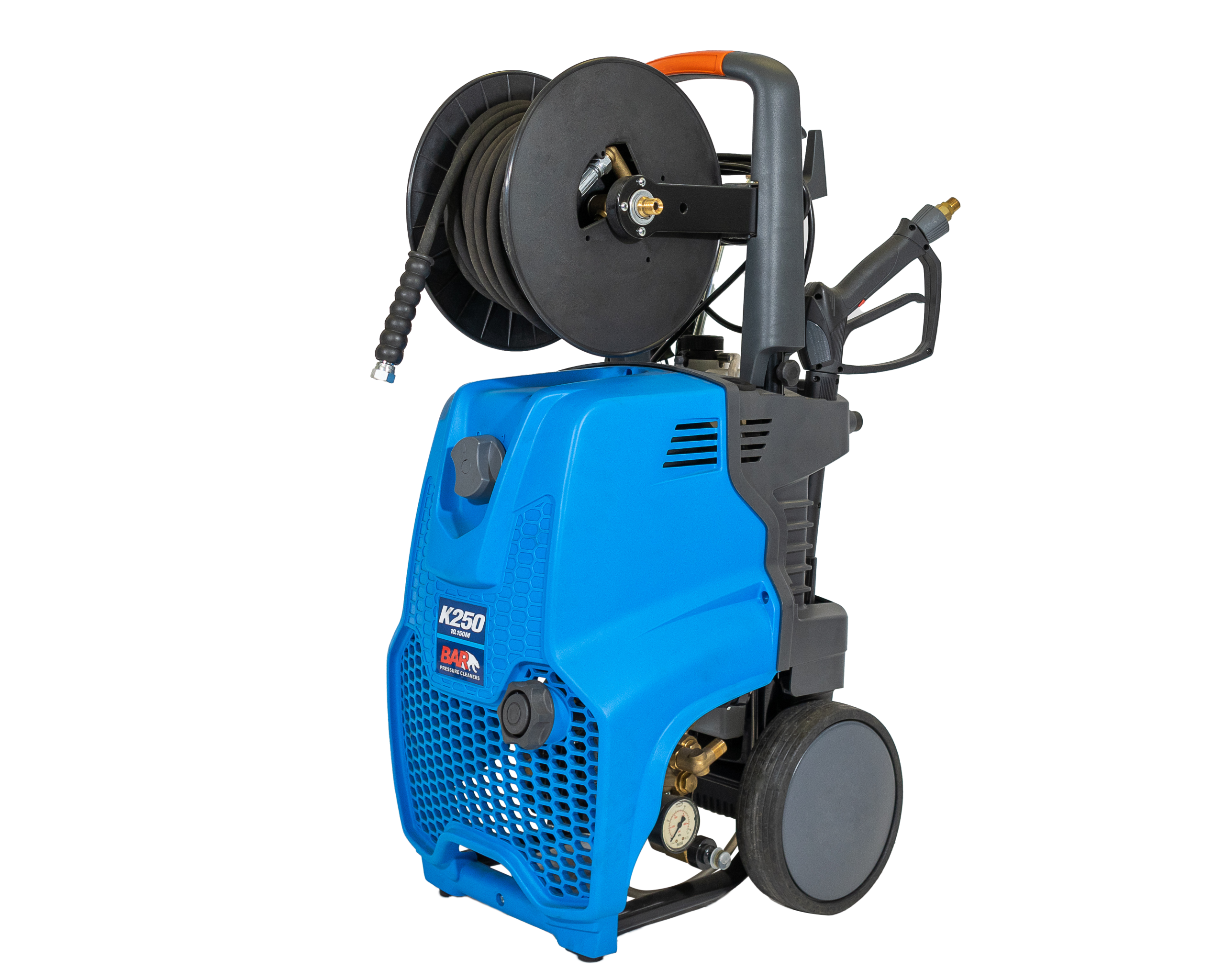 - Handle with supports for the power cable and delivery hose
