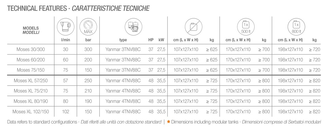 - 400, 500 or 800 I tanks capacity with modular tanks (not included)