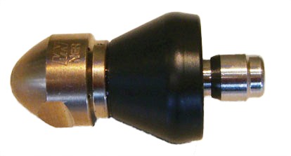 The Negotiator Invader Nozzle was designed with traps and gullies in mind. The round short head allows the nozzle to pull the hose around a waste trap/gully without getting caught on most joints. It also makes a great ‘general all round’ penetrating nozzle. It has 6 rear thrust jets and one forward penetrating jet.