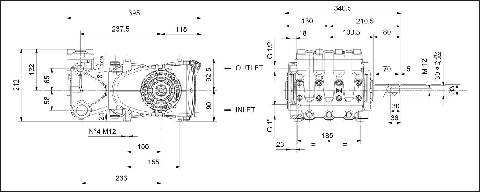 - Patent pending, symmetrical power end design featuring top and bottom mounting holes allowing for easy left-to-right shaft conversion.