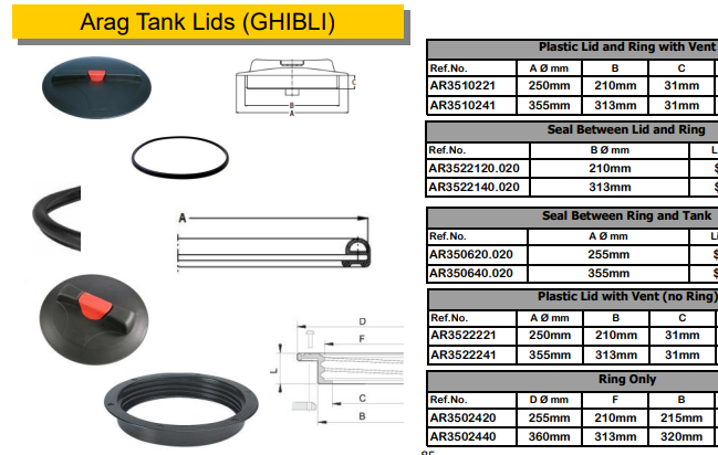 Tank Lid w Vent (No Ring) 250 mm